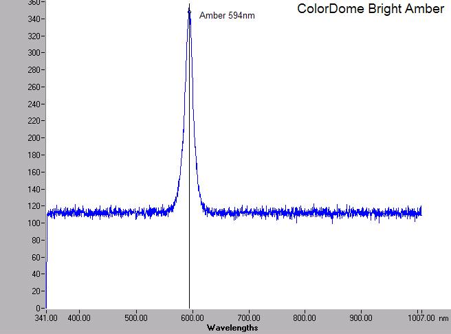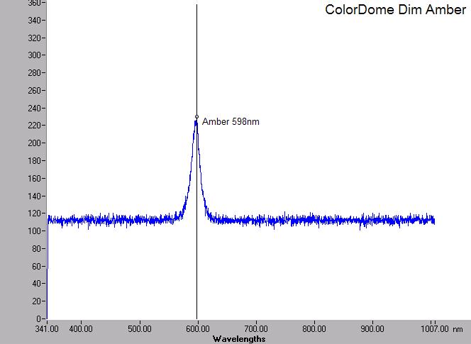 The system has two LED units, one mounted either side of the front port hole, which contains RED, GREEN, BLUE and AMBER LEDs. These can be adjusted for both duration and color electronically and cover a luminance range of approx. 107 producing flashes up to 25cd.s/m2, or steady state backgrounds of 500cd/m2. Control is provided by a constant current PWM circuit which keeps color changes with luminance intensity down to a minimum and provides a resolution of 64000 steps per ring. The circuit contains three rings of LEDs, a bright ring, a dim ring, and a low dim ring to achieve the vast luminance range and bright and dim rings are color calibrated. The LED spectral curves are listed below: